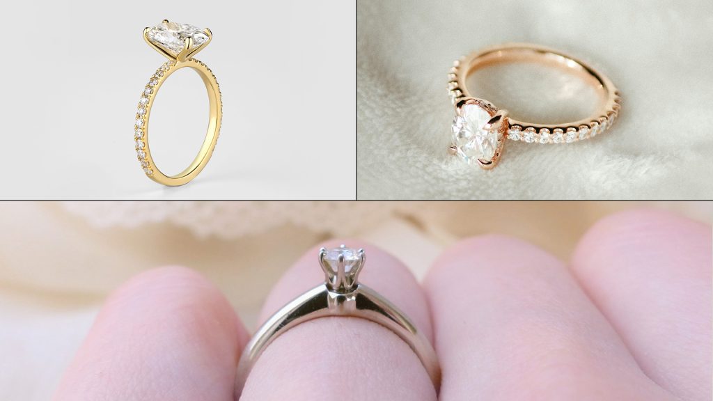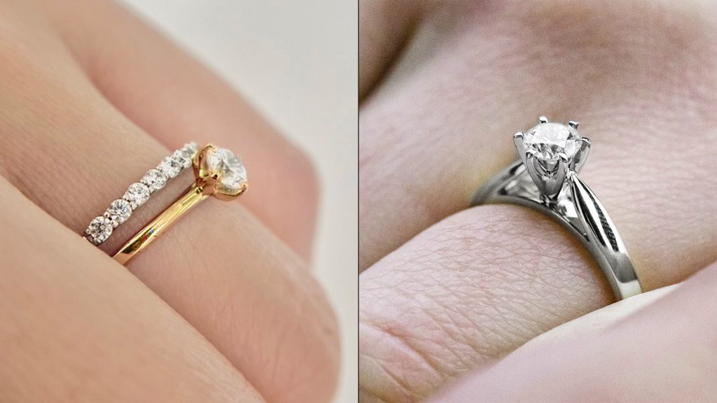 また、デザインに関しても、プラチナのリングはシンプルな傾向で、幅広い婚約指輪のデザインと調和します。