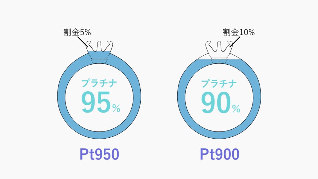 Pt900は、Pt950よりも、プラチナ以外の割金の割合が多いです。