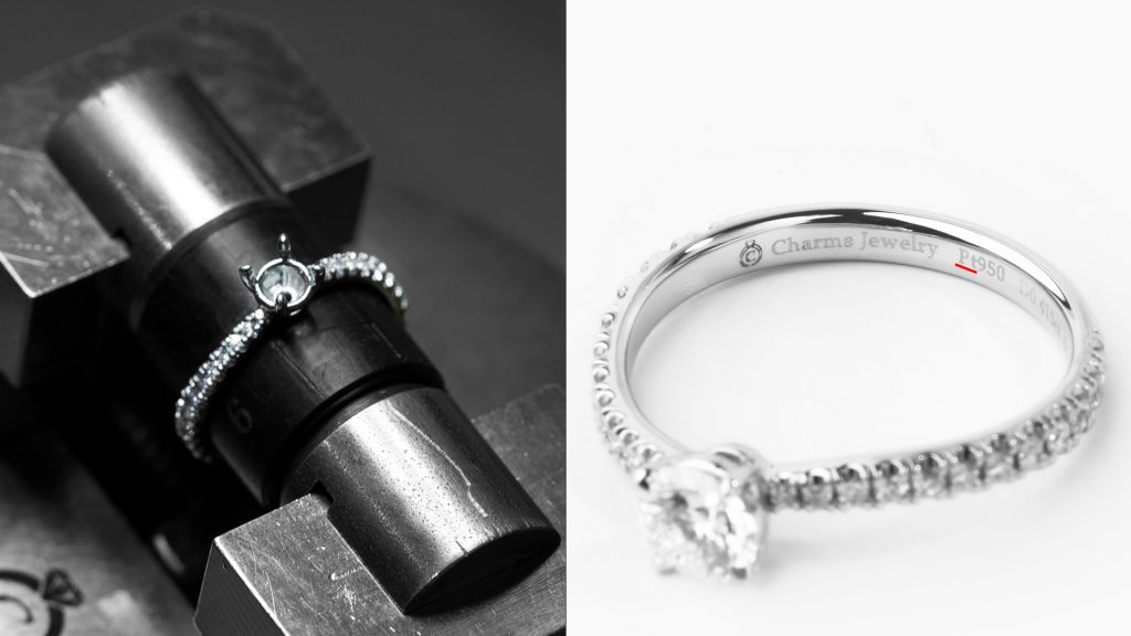 プラチナは、元素記号でPtと表されるように、プラチナで出来ている指輪には、リングの内側に、「Pt」と刻印が表示されます。